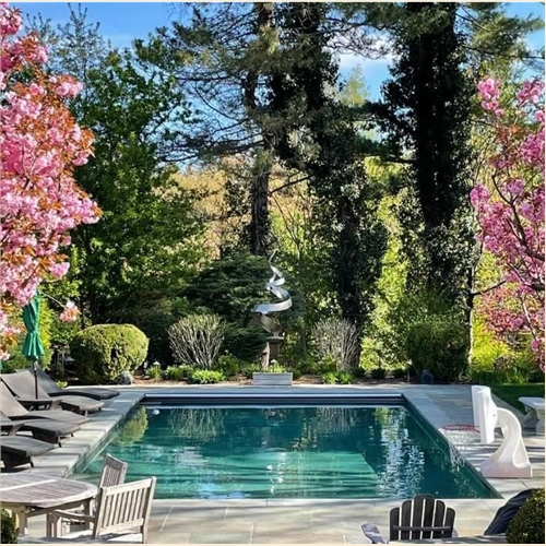 Sitting at the foot of a breathtaking pool and garden landscape, The hand crafted sculpture creates a focal point for this idyllic home in Irvington, NY.